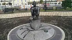 Another ship to be associated with the town, the Cunard passenger liner RMS Lusitania, was sunk by a German U-boat off the Old Head of Kinsale while en route from the US to Liverpool on 7 May 1915. 1,198 passengers died, while 700 were rescued. The survivors and the dead alike were brought to Queenstown, and the bodies of over 100 who perished in the disaster lie buried in the Old Church Cemetery just north of the town.[14] The Lusitania Peace Memorial is located in Casement Square, in front of the Arch Building housing the Cobh Library and Tourist Information Centre.[15]
