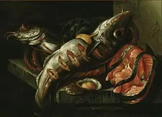 Sixteenth-century Flemish fishmonger displaying cod, by Joachim Beuckelaer
