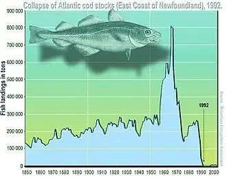 The Atlantic fishery abruptly collapsed in 1992, following overfishing since the late 1950s, and an earlier partial collapse in the 1970s.[66][67]