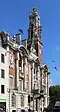 Between 1550 and 1600, a large number of weavers and clothmakers from Flanders emigrated to Colchester and the surrounding areas.[50] They were famed for the production of "Bays and Says" cloths which were woven from wool and are normally associated with baize and serge although surviving examples show that they were rather different from their modern equivalents.[51] An area in Colchester town centre is still known as the Dutch Quarter and many buildings there date from the Tudor period. During this period Colchester was one of the most prosperous wool towns in England and was also famed for its oysters.[50] Flemish refugees in the 1560s brought innovations that revived the local cloth trade, establishing the Dutch Bay Hall for quality control of the textiles for which Colchester became famous.[52] The old Roman wall runs along Northgate Street in the Dutch Quarter.
