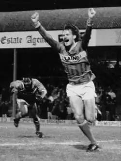 Micky Cook is the current Colchester United record holder for most appearances, holding the record for appearances made in both the league at 613, and in all competitions with 700 between 1969 and 1984.[72] Mike Walker ranks in second with 524 appearances in all competitions,[73] and Tony English third with 515.[74][75] Tony Adcock holds the record for most goals in all competitions with 149,[76][77] but Martyn King is the club's record league goalscorer with 132 goals.[78][79]