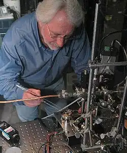 Martin Fleischmann of the University of Southampton and Stanley Pons of the University of Utah hypothesized that the high compression ratio and mobility of deuterium that could be achieved within palladium metal using electrolysis might result in nuclear fusion.[30] To investigate, they conducted electrolysis experiments using a palladium cathode and heavy water within a calorimeter, an insulated vessel designed to measure process heat. Current was applied continuously for many weeks, with the heavy water being renewed at intervals.[30] Some deuterium was thought to be accumulating within the cathode, but most was allowed to bubble out of the cell, joining oxygen produced at the anode.[31] For most of the time, the power input to the cell was equal to the calculated power leaving the cell within measurement accuracy, and the cell temperature was stable at around 30 °C. But then, at some point (in some of the experiments), the temperature rose suddenly to about 50 °C without changes in the input power. These high temperature phases would last for two days or more and would repeat several times in any given experiment once they had occurred. The calculated power leaving the cell was significantly higher than the input power during these high temperature phases. Eventually the high temperature phases would no longer occur within a particular cell.[31]