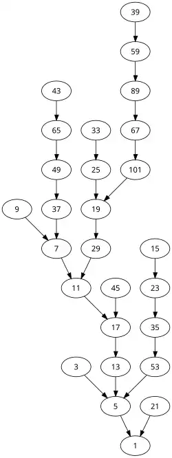 - ^ Guy, Richard K. (2004). ""E16: The 3x+1 problem"". Unsolved Problems in Number Theory (3rd ed.). Springer-Verlag. pp. 330–6. ISBN 0-387-20860-7. Zbl 1058.11001.