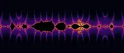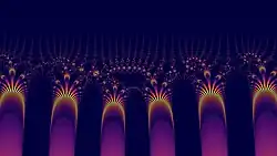 which exhibit different dynamics. In this case, for instance, if , then . The corresponding Julia set, shown on the right, consists of uncountably many curves, called hairs, or rays.