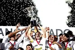 With the Argentine Claudio Borghi appointed coach in 2006, and with players like Matías Fernández and Humberto Suazo, Colo-Colo played scintillating football and obtained the Bicampeonato winning the Apertura[67] and Clausura tournaments.[68] The squad reached another international final, the Copa Sudamericana, losing 2–1 to Mexico's Pachuca. That season, El Cacique was recognized in the month of October by the IFFHS as the world's club of the month.[69] The following season Colo-Colo won two more consecutive tournaments, winning a Tetracampeonato for winning four back-to-back championships, being the first Chilean team to achieve the feat.[70]