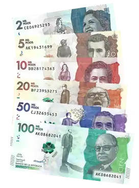- ^ "Billete de 2 mil pesos, 5 pasos para reconocerlo". Banrepgov.co. 15 November 2016. Retrieved 16 October 2017.