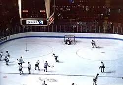 After purchasing the team, COMSAT organized its Denver sports franchises under a separate subsidiary, Ascent Entertainment Group Inc., which went public in 1995. COMSAT retained an 80% controlling interest, with the other 20% available on NASDAQ.[24] The Avalanche played their first game in the McNichols Sports Arena in Denver on October 6, 1995, winning 3–2 against the Detroit Red Wings. It marked a return of the NHL to Denver after an absence of 13 years, when the Colorado Rockies (not to be confused with the Major League Baseball team of the same name) moved to New Jersey to become the New Jersey Devils. Valeri Kamensky scored the first goal as the Avalanche, as well as the game-winning goal in the final minutes.[25] Led on the ice by captain Joe Sakic, forward Peter Forsberg, and defenseman Adam Foote and with Pierre Lacroix as the general manager and Marc Crawford as the head coach, the Avalanche became stronger when All-Star Montreal Canadiens goaltender Patrick Roy joined the team. Roy joined the Avalanche on December 6, 1995, together with ex-Montreal captain Mike Keane in a trade for Jocelyn Thibault, Martin Rucinsky, and Andrei Kovalenko.[26]