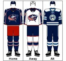 Since their inception, the Blue Jackets have worn navy and white jerseys with red pants.