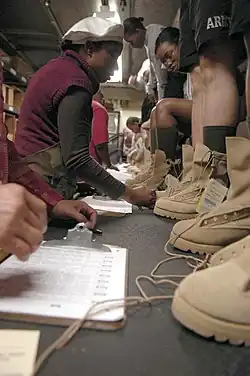 In 1957, the US Army switched to shined black combat boots, although the transition to black boots was not completed until late in the Vietnam War, which also saw the introduction of the jungle boot.[3][28][29] Both of these boots had a direct molded sole.[30] The jungle boot had a black leather lower and an olive drab canvas (later nylon) upper.[31] Black boots continued to be worn following Vietnam, with the M81 BDU, although non-shine boots were considered by the Army.[3][32][33][34] As the BDU was replaced with the MCCUU, Army Combat Uniform, and Airman Battle Uniform the services moved to more practical, non-shine footwear.[3][35] The only current military service mandating shined black combat boots are the United States Naval Sea Cadet Corps, the Auxiliary Cadet Detachment of the Naval forces, and the Civil Air Patrol, the Auxiliary of the U.S. Air Force, in conjunction with the BDU utility uniform.[36]
