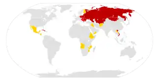 ![]() Map of Comecon member states as of November 1986 Comecon as of November 1986: Members Members that left the Warsaw Pact (Albania) Associate members Observers | |||||||