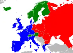 The Comecon was founded in 1949 by the Soviet Union, Bulgaria, Czechoslovakia, Hungary, Poland, and Romania. The primary factors in Comecon's formation appear to have been Joseph Stalin's desire to cooperate and strengthen the international relationships at an economic level with the smaller states of Central Europe,[3] and which were now, increasingly, cut off from their traditional markets and suppliers in the rest of Europe.[5] Czechoslovakia, Hungary, and Poland had remained interested in Marshall aid despite the requirements for a convertible currency and market economies. These requirements, which would inevitably have resulted in stronger economic ties to free European markets than to the Soviet Union, were not acceptable to Stalin, who, in July 1947, ordered these communist governments to pull out of the Paris Conference on the European Recovery Programme. This has been described as "the moment of truth" in the post-World War II division of Europe.[6] According to the Soviet view the "Anglo-American bloc" and "American monopolists ... whose interests had nothing in common with those of the European people" had spurned east–west collaboration within the framework agreed within the United Nations, that is, through the Economic Commission for Europe.[7]