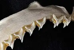 - ^ Shimada, K. (2002). "Teeth of embryos in lamniform sharks (Chondrichthyes: Elasmobranchii)". Environmental Biology of Fishes. 63 (3): 309–319. Bibcode:2002EnvBF..63..309S. doi:10.1023/A:1014392211903. S2CID 27653232.
