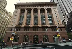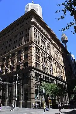 The former global headquarters of Commonwealth Bank were the Commonwealth Trading Bank Building on the corner of Pitt Street and Martin Place, Sydney, which was refurbished from 2012 for retail and commercial uses, and (from 1984 to 2012) the State Savings Bank Building on Martin Place, which was sold in 2012 to Macquarie Bank. The headquarters were then moved, splitting between two locations; Tower 1 of 201 Sussex Street and the Commonwealth Bank Place; a new complex of two nine-storey buildings in Darling Harbour on the western side of Sydney's city centre.[6] In 2022, the headquarters were consolidated into the Commonwealth Bank Place, with Tower 1 of 201 Sussex Street remaining as a secondary head office.[7]