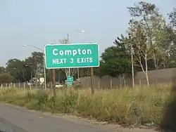 Highway sign for Compton on State Route 91