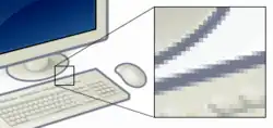In the enlarged portion of the image individual pixels are rendered as squares and can be easily seen.