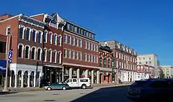 South from the Eagle Hotel on Main Street is Phenix Hall, which replaced "Old" Phenix Hall, which burned in 1893. Both the old and new buildings featured multi-purpose auditoriums used for political speeches, theater productions, and fairs. Abraham Lincoln spoke at the old hall in 1860; Theodore Roosevelt, at the new hall in 1912.[60]