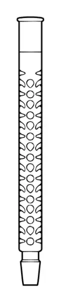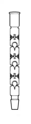 The Snyder column is a wide glass tube divided into sections (usually 3 to 6) by horizontal glass partitions or constrictions. Each partition has a hole, into which seats a hollow glass bead with an inverted "teardrop" shape. Vigreux-like glass "fingers" limit the vertical motion of each bead.[24] These floating glass stoppers act as check valves, closing and opening with vapor flow, and enhancing vapor-condensate mixing. A Snyder column can be used with a Kuderna-Danish concentrator to efficiently separate a low boiling extraction solvent such as methylene chloride from volatile but higher boiling extract components (e.g., after the extraction of organic contaminants in soil).[25]