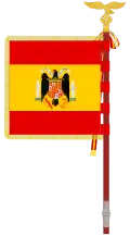 The Spanish Cross (German: Spanienkreuz) campaign medal began to be awarded by the German authorities in seven classes on 14 April 1939.[nb 8] The clandestine nature of German activities in Spain meant that no awards were made until April 1939, at the end of German involvement in the conflict. The Spanish Cross complemented the Condor Legion Tank Badge, which was approved on 10 July 1939,[84] and cuff titles were issued. Legionnaires also received a campaign medal struck by the Spanish authorities to thank German volunteers for their service.[85] An al Merito En Campaña medal was awarded to the legion as a whole, and added to its battle flag.