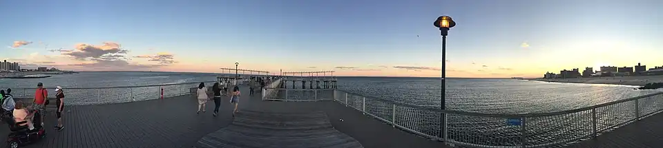 ![]() Coney Island beach, amusement parks, and high-rises, as seen from the pier in June 2016 | |