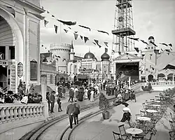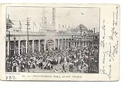 - ^ George C. Tilyou; Founder of Steeplechase, Coney Island History Project. Retrieved January 1, 2024. "Tilyou came with his parents to Coney Island in 1865 at the tender age of three. His father, Peter, opened a small wooden bathhouse and restaurant on the beach, and young George was soon selling bottles of souvenir sand to visitors."