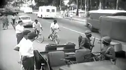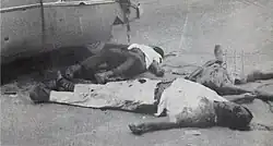 Major riots broke out in Léopoldville, the Congolese capital, on 4 January 1959 after a political demonstration turned violent. The Force Publique, the colonial gendarmerie, used force against the rioters—at least 49 people were killed, and total casualties may have been as high as 500.[23] The nationalist parties' influence expanded outside the major cities for the first time, and nationalist demonstrations and riots became a regular occurrence over the next year, bringing large numbers of black people from outside the évolué class into the independence movement. Many blacks began to test the boundaries of the colonial system by refusing to pay taxes or abide by minor colonial regulations. The bulk of the ABAKO leadership was arrested, leaving the MNC in an advantageous position.[24]