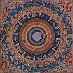 Ottoman period cosmographical map, with spheres of the planets, signs of the Zodiac and lunar mansions (Zubdat al-Tawarikh)