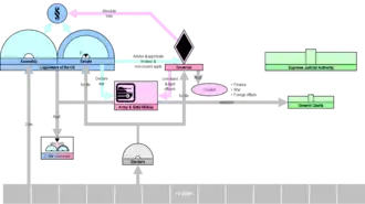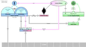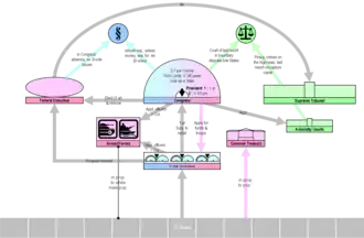 As English law had typically recognized government as having two separate functions—law making embodied in the legislature and law executing embodied in the king and his courts—the division of the legislature from the executive and judiciary was a natural and uncontested point.[29] Even so, the form the executive should take, its powers and its selection would be sources of constant dispute through the summer of 1787.[75] At the time, few nations had nonhereditary executives that could serve as models. The Dutch Republic was led by a stadtholder, but this office was usually inherited by members of the House of Orange. The Swiss Confederacy had no single leader, and the elective monarchies of the Holy Roman Empire and Polish–Lithuanian Commonwealth were viewed as corrupt.[76]