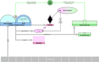 Under the Articles, the United States was essentially a federation of independent republics, with the Articles guaranteeing state sovereignty and independence. The Confederation was governed by the Congress of the Confederation, a unicameral legislature whose members were chosen by their state legislatures and where each state was entitled to one vote.[12] Congress's powers were limited to waging war and directing foreign affairs. It could not levy taxes or tariffs, and it could only request money from the states and could not force delinquent states to pay.[13] Since the Articles could only be amended by a unanimous vote of the states, each state had effective veto power over any proposed change.[14] A super majority (nine of thirteen state delegations) was required for Congress to pass major legislation such as declaring war, making treaties, or borrowing money.[15] The Confederation had no executive or judicial branches, which meant the Confederation government lacked effective means to enforce its own laws and treaties against state non-compliance.[16] It soon became evident to nearly all that the Confederation government, as originally organized, was inadequate for managing the various problems confronting the United States.[14]