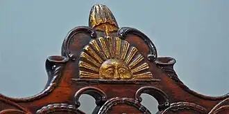 Detail of the Rising Sun Chair that presiding officer George Washington sat in during the convention.