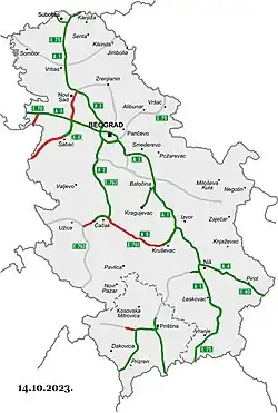 - ^ "Uredba o kategorizaciji državnih puteva". Official Gazette of the Republic of Serbia (in Serbian) (105). 29 November 2013. Archived from the original on 24 September 2015.