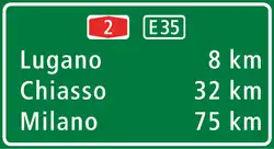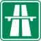 ) appears at motorway entry in countries that follow the Vienna Convention. Exits are marked with another symbol: