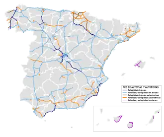- ^ "Catálogo y evolución de la red de carreteras" (in Spanish). Ministerio de Transportes, Movilidad y Agenda Urbana. Retrieved 10 March 2021.