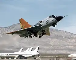 To standardize aircraft types, the USAF was directed to conduct Operation Highspeed, a flyoff competition between the USAF F-106A and the U.S. Navy F4H-1 (F-4B) Phantom, which was not only as capable as the F-106 as a missile-armed interceptor but could carry as large a bomb load as the Republic F-105 Thunderchief fighter-bomber.[46] The Phantom was the winner but would first be used to escort and later replace the F-105 fighter-bomber in the late 1960s before replacing older interceptors in Air Defense Command in the 1970s.