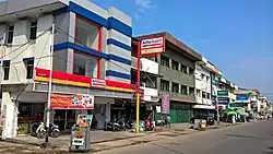 The two major national convenience store chains in Indonesia are Indomaret and Alfamart, both of which serve almost all areas within the country with around 22,000 and 18,000 stores in 2023, respectively.[25] Foreign chains like Family Mart, Circle K or Lawson, on the other hand, have their stores in big cities and cater to a specific lifestyle instead of focusing on "convenience". To be classified as a convenience store, the store should occupy no more than 100 square meters (1,100 sq ft) of service area; in some local residences, the limit is 250 square meters (2,700 sq ft).