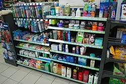 A convenience store, convenience shop, bakkal, bodega, corner store, corner shop, superette or mini-mart is a small retail store that stocks a range of everyday items such as convenience food, groceries, beverages, tobacco products, lottery tickets, over-the-counter drugs, toiletries, newspapers and magazines under one roof.[1][2][3][4]