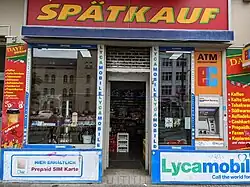 Berliners call the small neighbourhood shops with late opening times found throughout the city (often operated by families with immigrant roots, akin to France) Späti (translating to "Lat(e)y", derived from Spätkauf, "late purchase").