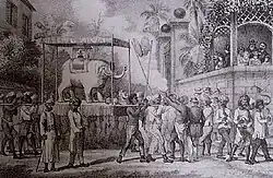 The importation of Asian labourers into European colonies occurred as early as the 17th century.[20] However, in the 19th century, a far more robust system of trade involving coolies occurred, in direct response to the gradual abolition of both the Atlantic slave trade and slavery itself, which for centuries had served as the preferred mode of labour in European colonies in the Americas.[21] The British were the first to experiment with coolie labour when, in 1806, two hundred Chinese labourers were transported to the colony of Trinidad to work on the plantations there.[22] The "Trinidad experiment" was not a success, with only twenty to thirty labourers remaining in Trinidad by the 1820s.[20] However, such efforts inspired Sir John Gladstone, one of the earliest proponents of coolie labour, to seek out coolies for his sugar plantations in British Guiana in the hopes of replacing his Afro-Caribbean labour force after the abolition of slavery there in 1833.[23]