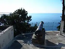 135. ^ a b Stamatopoulos 1993, pp. 163–165, 325: "On a precipitous rocky peak dominating a wide range of coastline around Palaeokastritsa stand the crumbling walls and battlements of the twelfth-century Byzantine Fortress of Angelokastro, not far from the village of Krini." (p. 163); "After a siege lasting a year the invaders were finally driven away by the defenders of the fortress who were helped by the inhabitants of the neighbouring villages. Again, during the first great siege of Corfu by the Turks in 1537, Angelocastro successfully resisted attack. About 3,000 villagers had sought refuge within the fortress to escape the fate of the inhabitants of other parts of the island who were ... In 1571, when they once more invaded Corfu, the Ottomans again unsuccessfully attacked, Angelocastro, where 4,000 people had taken refuge. During the second great siege of the city by the Ottomans in 1716, Angelokastro once again served as a refuge for the ... During the course of the centuries Angelocastro played an important part in the defence of the island. In 1403 a force of Genoese soldiers, under the command of the French condottiere Boucicaut, landed at Palaeokastritsa and attacked ... The fortress existed in 1272 when it was formally taken over by the Italian Giordano di San Felice in the name of the Angevin rulers of Naples, who held the island of Corfu from 1267 to 1386." (p. 164); "... Angelocastro was probably built during the reign of the Byzantine Emperor Manuel Comnenos (1143 - 1180)." (p. 164); "This was used as a hermitage and was converted into a chapel, probably around the end of the eighteenth century" (p. 165); "From the top of Angelocastro the view sweeps far and wide over the hills across the breadth of Corfu, to the town, the Eastern Channel and the mountains on the mainland, over a sheer drop of a thousand feet to the sea below" (p. 325).