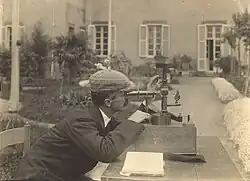 In 1909, Theodor Wulf developed an electrometer, a device to measure the rate of ion production inside a hermetically sealed container, and used it to show higher levels of radiation at the top of the Eiffel Tower than at its base.[23] However, his paper published in Physikalische Zeitschrift was not widely accepted. In 1911, Domenico Pacini observed simultaneous variations of the rate of ionization over a lake, over the sea, and at a depth of 3 metres from the surface. Pacini concluded from the decrease of radioactivity underwater that a certain part of the ionization must be due to sources other than the radioactivity of the Earth.[24]