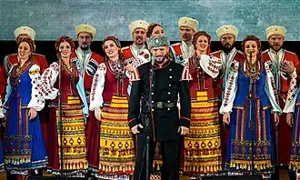 Between 3.5 and 5 million people associate themselves with the Cossack cultural identity across the world, even though the majority have little to no connection to the original Cossack people because cultural ideals and legacy changed greatly with time.[7][8] Cossack organizations operate in Russia, Ukraine, Belarus, Kazakhstan, Canada, and the United States.[9][10]