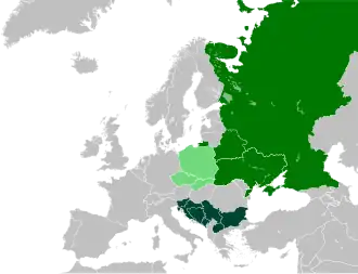 The major powers tried to exploit Cossack military power for their own purposes. In the 16th century, with the area of the Polish-Lithuanian Commonwealth extending south, the Zaporozhian Cossacks were mostly, if tentatively, regarded by the Commonwealth as their subjects.[46] Foreign and internal pressure on the Polish-Lithuanian Commonwealth led to the government making concessions to the Zaporozhian Cossacks. King Stephen Báthory granted them certain rights and freedoms in 1578, and they gradually began to create their foreign policy. They did so independently of the government, and often against its interests, as for example with their role in Moldavian affairs, and with the signing of a treaty with Emperor Rudolf II in the 1590s.[45] Registered Cossacks formed a part of the Commonwealth army until 1699.