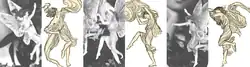 Seated on the upper left hand edge with wing well displayed is an undraped fairy apparently considering whether it is time to get up. An earlier riser of more mature age is seen on the right possessing abundant hair and wonderful wings. Her slightly denser body can be glimpsed within her fairy dress.[39]