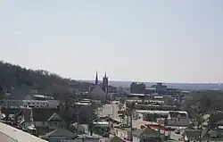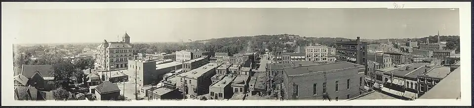 Downtown Council Bluffs historically was the area along West Broadway and adjacent streets from Old Town west to the Chicago and North Western Transportation Company Railroad passenger depot at 11th Street. The downtown area developed as the economic rival of Old Town after the 1853 opening of the Pacific House Hotel by Samuel S. Bayliss and until the 1867 completion of the Chicago and Northwestern. In 1899, the Illinois Central passenger depot opened at 12th St. and West Broadway.