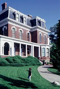 Until about 1853, Council Bluffs was known as Kanesville.[11] Kanesville was the historic starting point of the Mormon Trail. Kanesville is also the northernmost anchor town of the other emigrant trails because there was a steam-powered boat which ferried the settlers' wagons and cattle across the Missouri River.[11] In 1869, the first transcontinental railroad to California was connected to the existing U.S. rail network at Council Bluffs.
