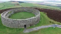 Donegal can be divided into six main geological subdivisions.[46] Of these, the most expansive sections are the Lower Carboniferous limestones and sandstones of south Donegal, the Devonian granite of the Donegal batholith, which extends for about 75 km northeast to southwest from Ardara to Fanad Head, and quartzo-feldspathic Dalradian rocks from the Precambrian era, which cover much of the rest of the county. The geology of Donegal is very similar to that of County Mayo, and both counties are located within the Grampian Terrane. The oldest rocks in Ireland are a granitic gneiss found on the island of Inishtrahull, located ca. 10 km (6.2 mi) north-east of Malin Head. They are 1.78 billion years old, making them Paleoproterozoic in age.[47] The oldest rocks on mainland Donegal are a quartzo-feldspathic paragneiss found around Lough Derg, which have been dated to 1.713 billion years ago.[48]