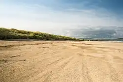 The highest point in the county is the summit of Sawel Mountain (678 metres (2,224 ft)) on the border with County Tyrone. Sawel is part of the Sperrin Mountains, which dominate the southern part of the county. To the east and west, the land falls into the valleys of the Bann and Foyle rivers respectively; in the south-east, the county touches the shore of Lough Neagh, which is the largest lake in Ireland; the north of the county is distinguished by the steep cliffs, dune systems, and remarkable beaches of the Atlantic coast.