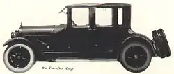 The 1921 and 1922 LaFayette models were available in a variety of open and closed body styles that included a close-coupled version featuring two center-opening doors on each side that was marketed as a Four-Door Coupe.[49] The 1927 Nash Advanced Six was available in four-door coupe body style.[50]