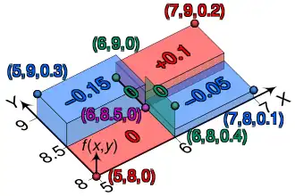 Suppose that and have the following joint probability mass function,[8] in which the six central cells give the discrete joint probabilities of the six hypothetical realizations :