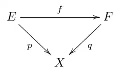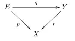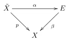 Let be a topological space and and be coverings. Both coverings are called equivalent, if there exists a homeomorphism , such that the diagram