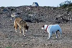 In 1993, a study proposed that the wolves of North America display skull traits more similar to the coyote than wolves from Eurasia.[57] In 2010, a study found that the coyote was a basal member of the clade that included the Tibetan wolf, the domestic dog, the Mongolian wolf and the Eurasian wolf, with the Tibetan wolf diverging early from wolves and domestic dogs.[58]